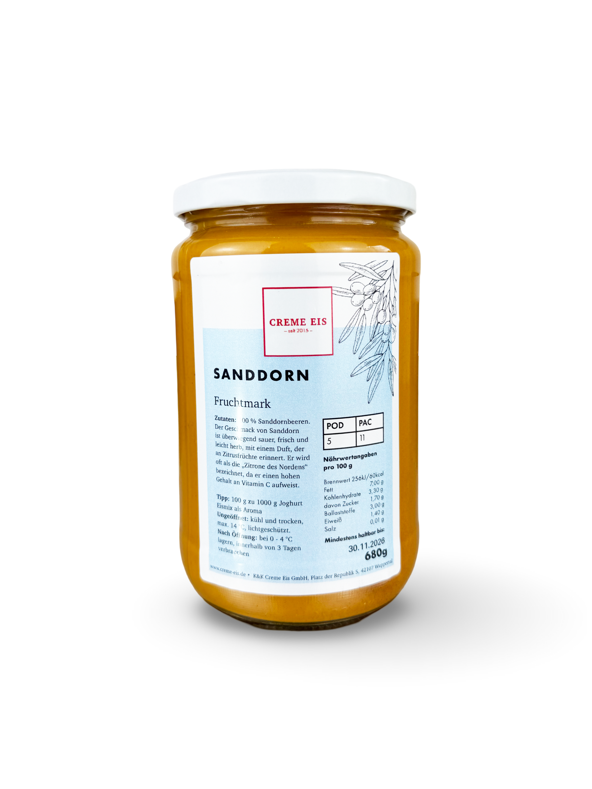 Der Geschmack von Sanddorn ist überwiegend sauer, frisch und leicht herb, mit einem Duft, der an Zitrusfrüchte erinnert. Er wird oft als die „Zitrone des Nordens“ bezeichnet, da er einen hohen Gehalt an Vitamin C aufweist.